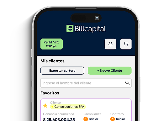 Un MIC es un profesional comercial independiente y socio de nuestra app que construye y gestiona su cartera y define su propio ritmo de crecimiento. Se enfoca en sus clientes y en desarrollar relaciones de confianza, mientras Billcapital respalda su operación con tecnología, capital y soporte operativo, facilitando la gestión diaria y permitiendo escalar el negocio con mayor eficiencia y control.